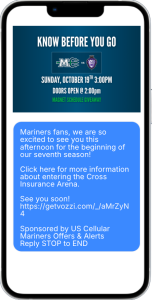 Sponsors are also integrated into Know Before You Go messaging — one of the most anticipated communications fans receive before attending a game.